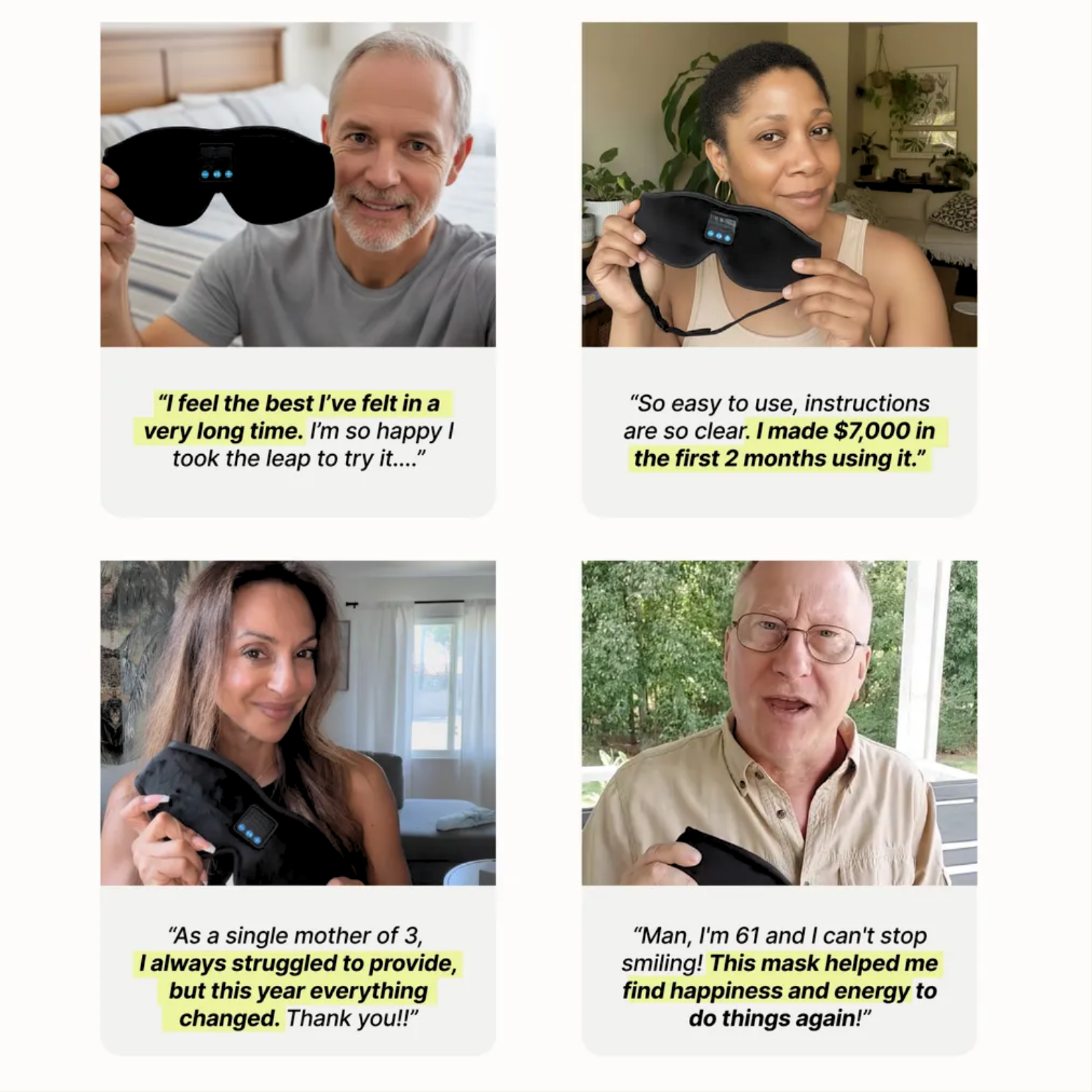 The mask plays subliminals and affirmations through embedded speakers while you sleep. With blackout comfort and engineered subliminal audios, it bypasses limiting beliefs and reprograms your mind to persist in the “wish fulfilled” all night.