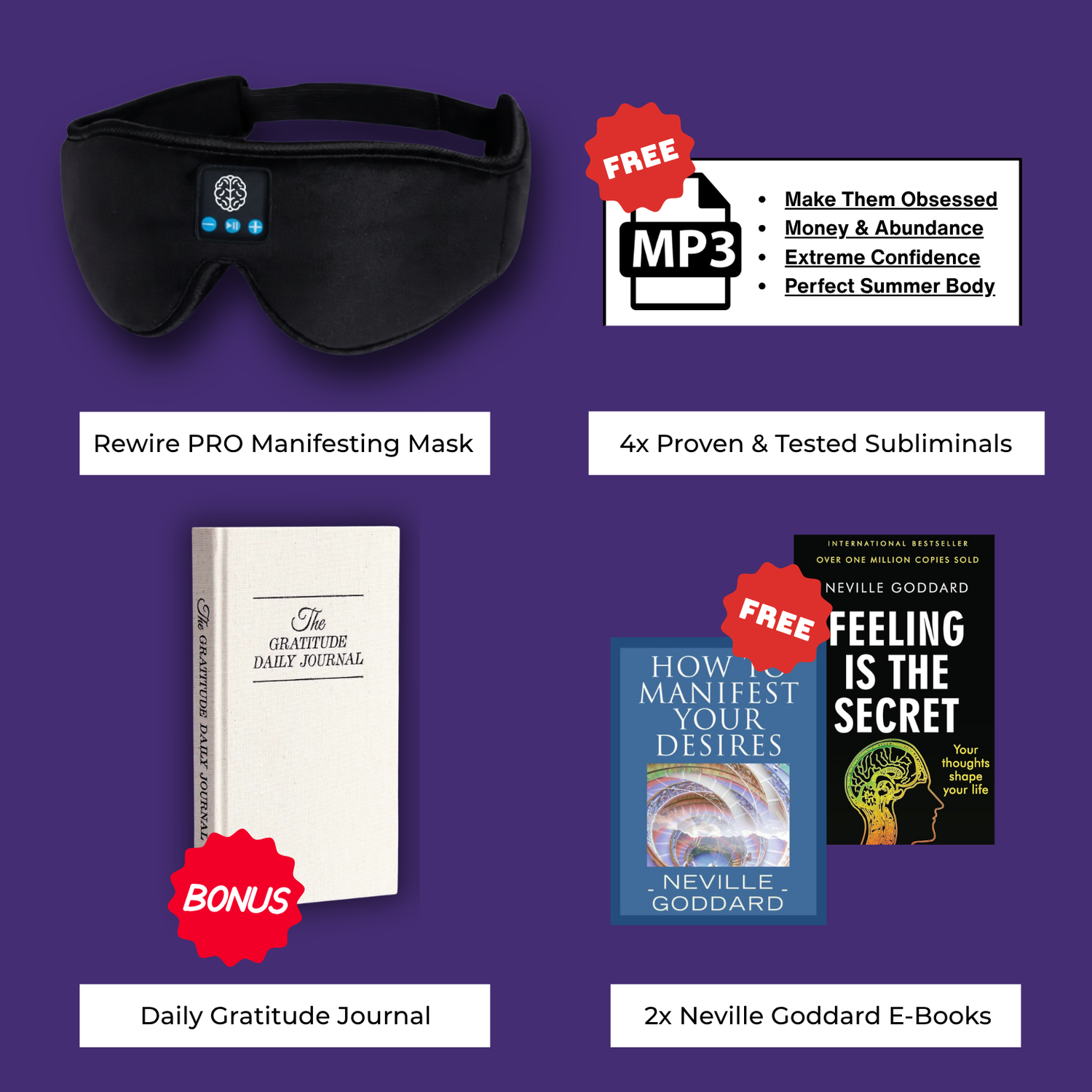 Rewire™ PRO is the first-ever manifesting mask that reprograms your subconscious with subliminals all night long — so you can finally manifest what you want without overthinking it.